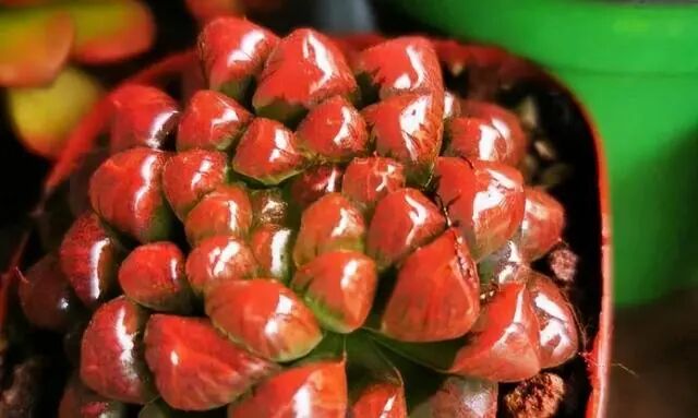 虽然现在给多肉喷漆这种低劣手段已经不常见,但并不是说它不存在。前几天看到一个花友晒新买的玉露,就是喷过漆的。多肉喷漆就是在叶子表面喷一层有颜色的涂料,看起来油光发亮,特别好看,吸引花友购买。早几年多肉玉露喷漆很常见,现在越来越多人知道了喷漆的真相,市面上喷漆的多肉也就变少了。喷过漆的多肉,成活率非常低,养一段时间以后,慢慢整株就枯死了。因为喷在上面的颜料会影响叶子呼吸,会把整株都闷死。商家给多肉喷的颜料,擦不掉,洗不掉,想提高这种肉肉的成活率,只能砍头让重新长出健康的叶子。判断多肉有没有喷漆,重点看叶子上面。要是叶子上面的颜色很均匀,明显和其他地方的颜色不一样,闻起来有异味,或者摸起来特别光滑,就可能是喷漆的。一般养过多肉的花友,都能一眼辨别出哪些是喷漆的,哪些是没有喷漆的。新手花友买多肉,就容易买到喷漆的。